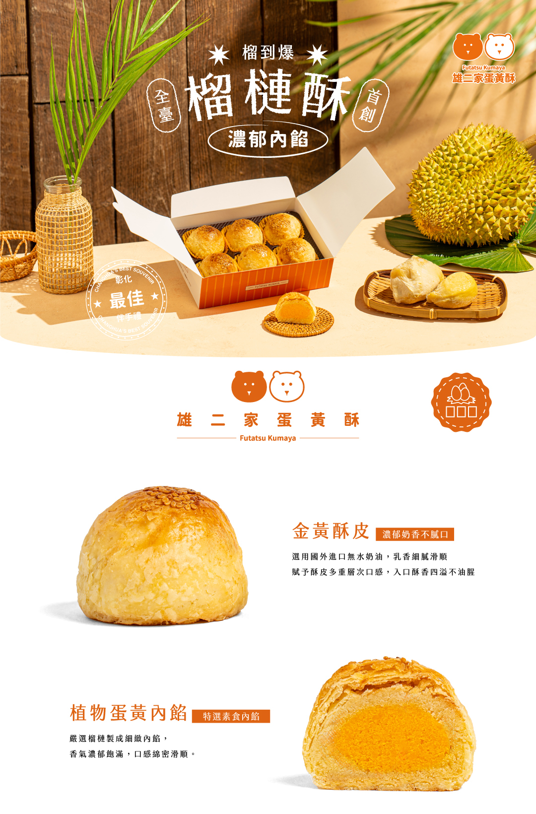 外層酥香,入口就是滿滿的榴槤風味,尾韻會帶出淡淡牛奶香氣,整體風味溫潤、不厚重。