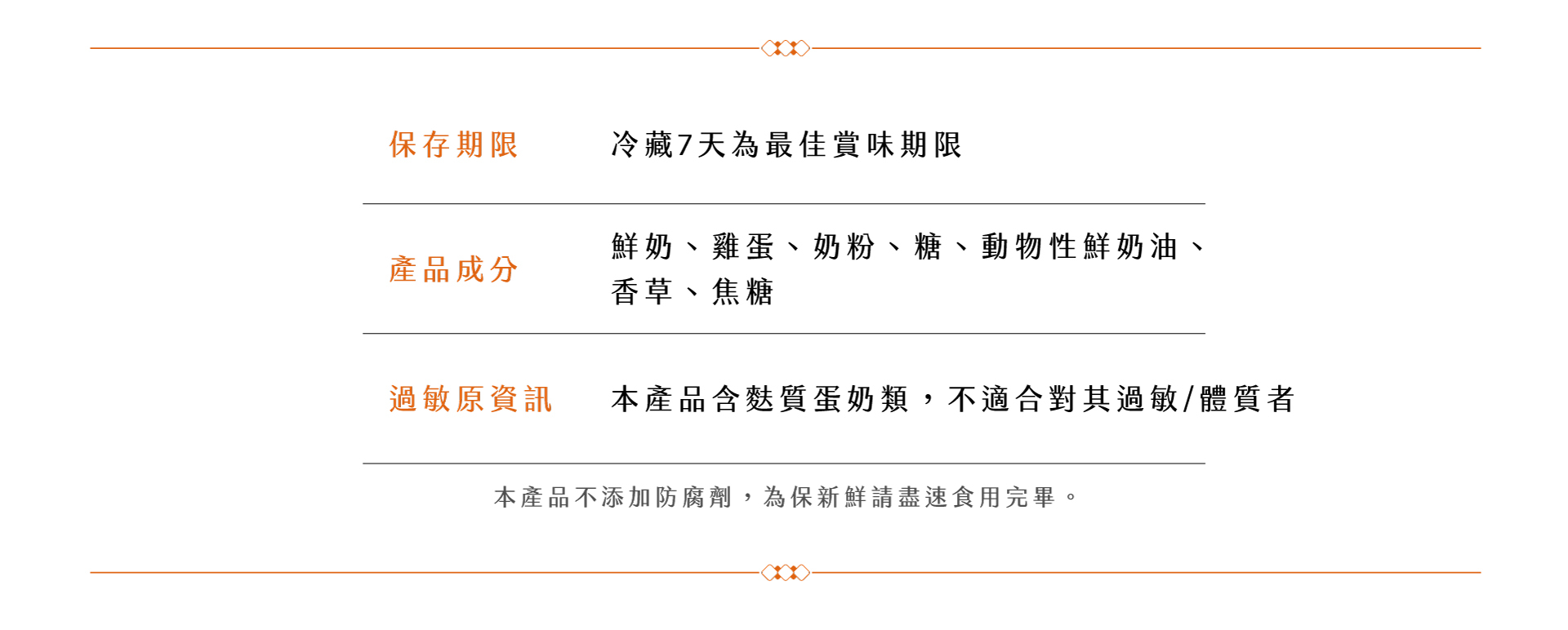 ▪︎ 商品成分:鮮奶、雞蛋、奶粉、糖、動物性鮮奶油、香草、焦糖
