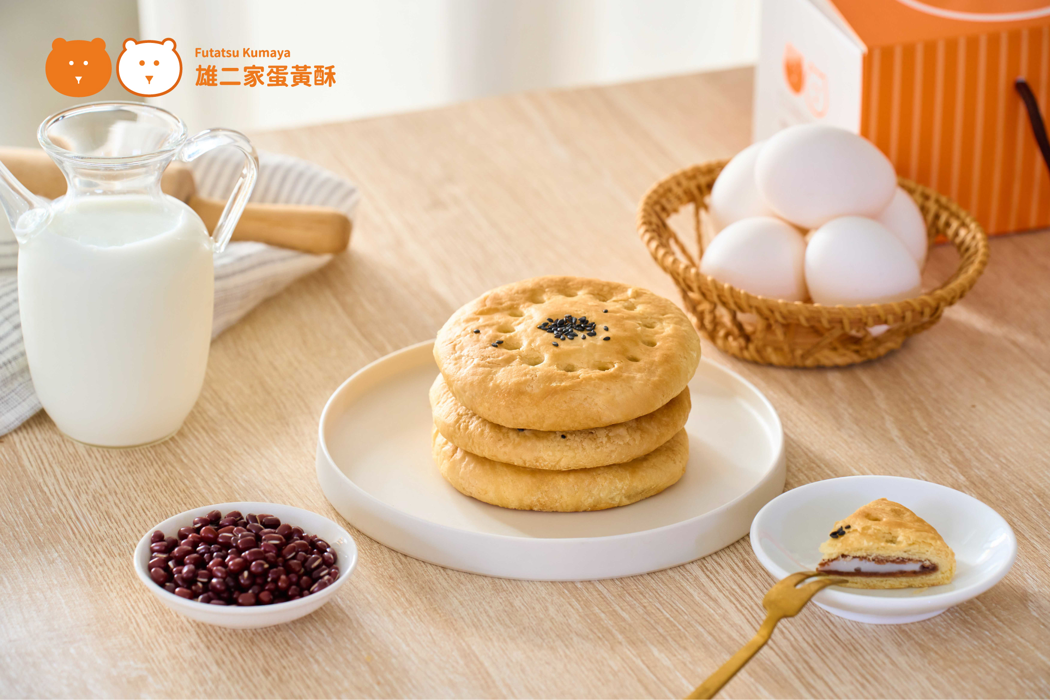 雄二家招牌蛋黃酥傳承匠心工藝,堅持每日手工現做。餅皮選用國外進口無水發酵奶油製成,乳香濃郁不膩口,手桿層層餅皮金黃酥香,內餡嚴選紅豆漫火熬煮,包覆本土特級鹹蛋黃,健康減糖配方吃得出食材天然好滋味,入口即化香氣四溢,讓人一吃就愛上!